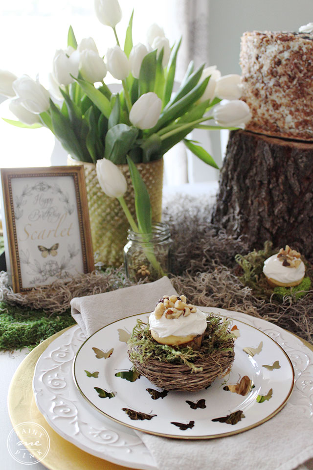 I’m not a huge fan of regular size cupcakes, but the mini ones I love! They also fit perfectly inside the mini bird nests which I filled with more moss. You truly don’t need a whole lot to make something beautiful!