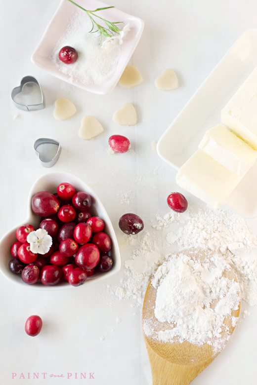 I believe that Valentine’s Day isn’t all about flowers and fancy dinners, it’s about showing how much you care to those dearest to you. With a little flour and fresh cranberries you can bake a little something that will warm everyone’s heart.